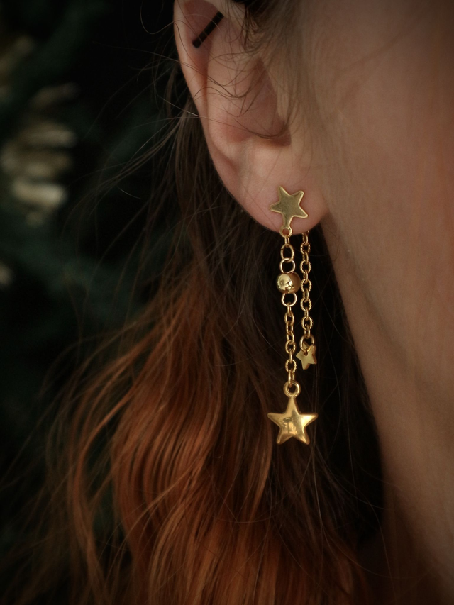 Des boucles plus présentes, avec des étoiles en cascade qui bougent délicatement à chaque geste.
