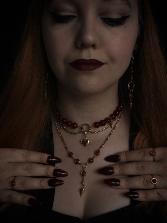 Matériaux : Jade naturelle (Chine) teinté, acier inoxydable